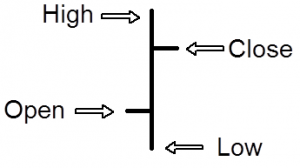Bars: The prices are reflected each day via a “bar”. This is where we get the name “bar chart.” Below is how to read a “bar.”