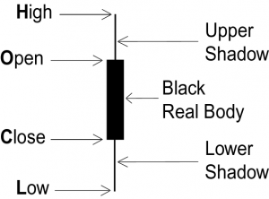- Black Real Body – A black or filled in real body appears when the close is lower than the open, and is considered bearish.