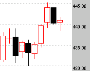 Now let’s see what the same data used to construct a bar chart looks like on a candlestick chart. See how the candlestick chart almost jumps off the page!