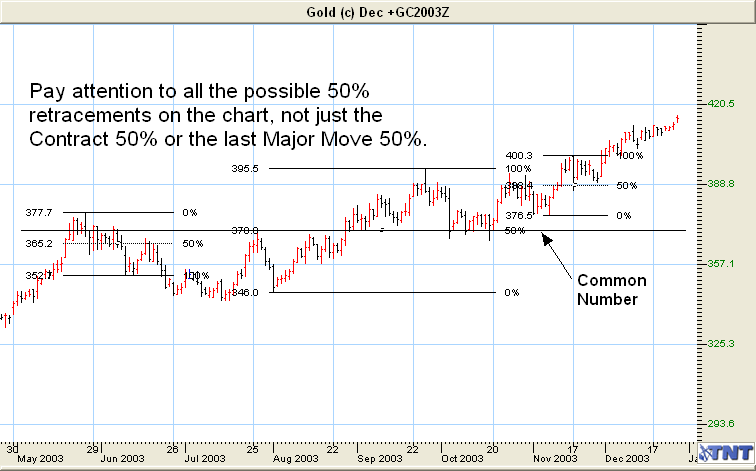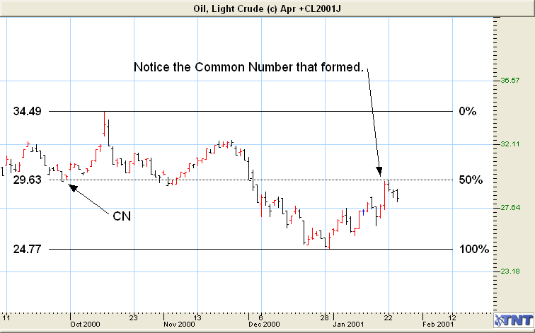 It’s also interesting to note that the 50% level on this chart also became a Common Number that you learned about earlier. You should have been aware that when you drew the 50% level, that it hit, it could become a Common Number, which is a strong resistance level itself.