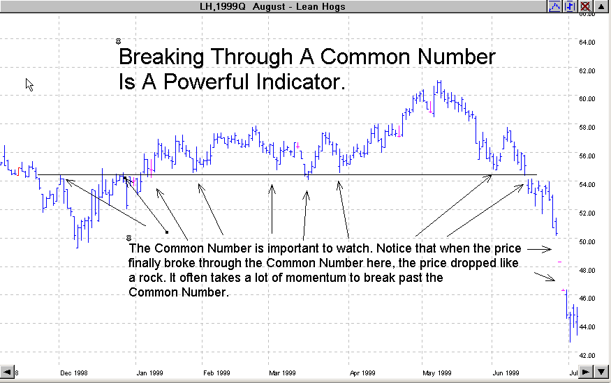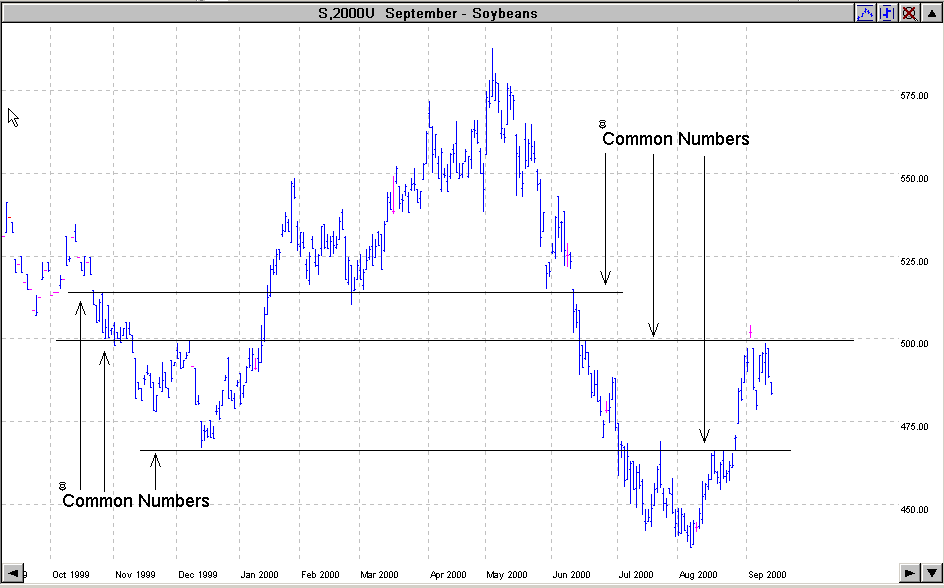 Many times there will be a major Common Number or a “CN” on a contract. What I mean is, there is a specific price that will show both support and resistance several times during the contract over a long period of time. This is a very powerful indicator. Many times the 50% level becomes a CN too.