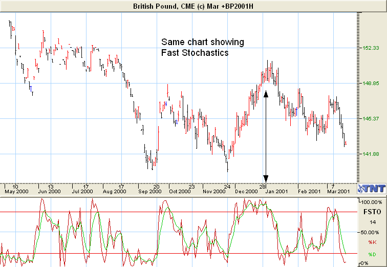 Again, I tend to think that Slow Stochastics is a little more reliable indicator, but then again it’s a matter of personal preference and you should look at many charts and decide for yourself which indicators, if any, you like to use in your trading plan.