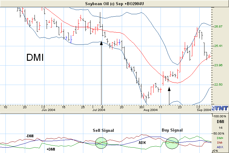 Out of all the different indicators, this is probably the most intimidating one. It shouldn’t be as the interpretation is pretty easy. When the +DI line crosses above the –DI line, a long position is taken. When the –DI crosses above the +DI the position reverses and a short position is taken. Trend reversals usually occur with the first down turn of the ADX after the ADX has crossed above both of the DI lines.