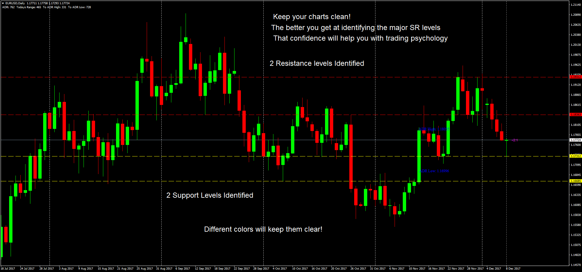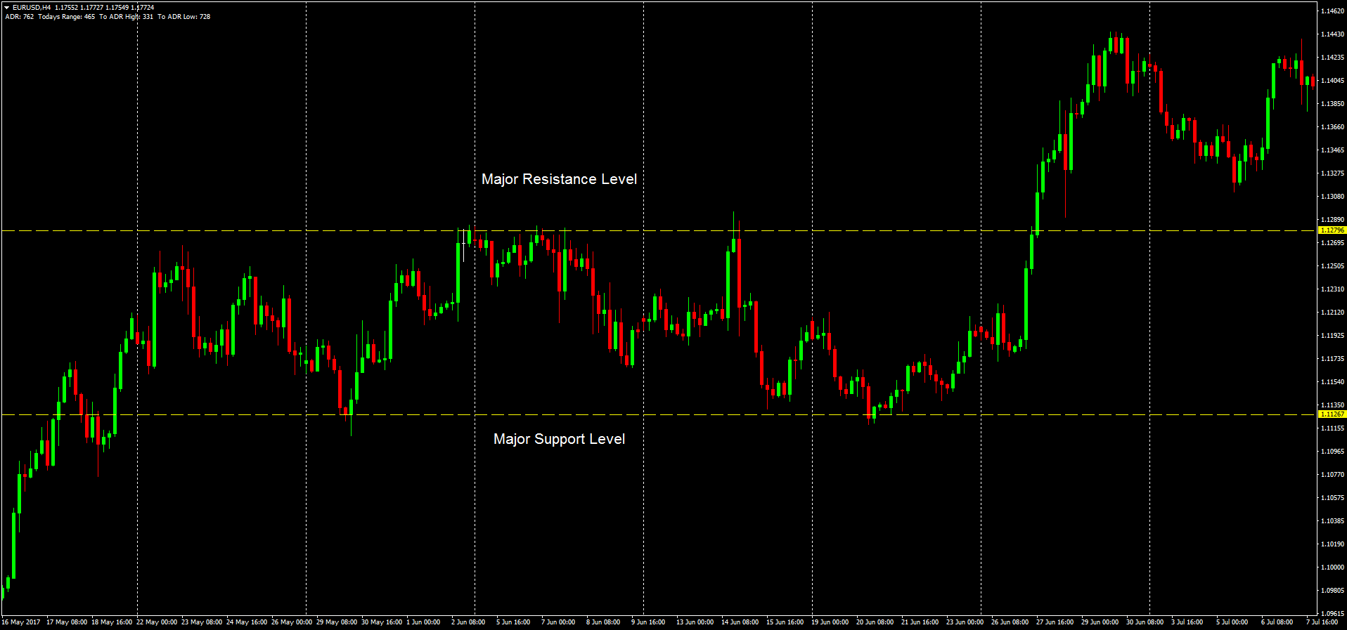 Important note: SR levels are areas and not a specific price. It is simply easier to represent the level with the horizontal line.